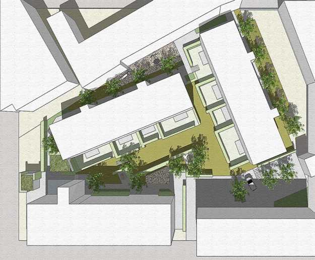 Freiflächengestaltung für sanierte Altbauten und neue Gebäude auf einem ehemaligen Betriebshof der Stadt Stuttgart